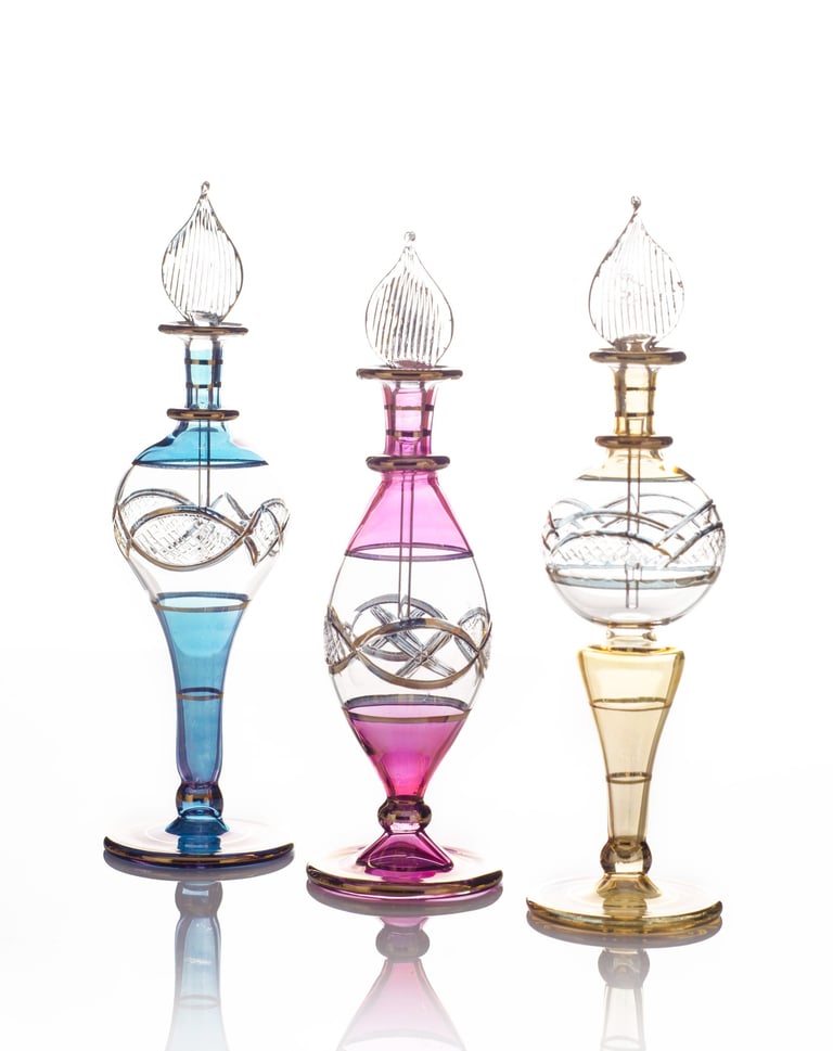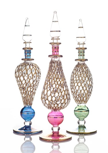 Crystal-clear glass infused with artistry, perfect for perfumes or as decorative treasures.